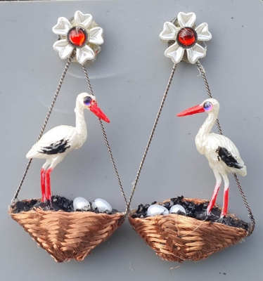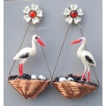Störche mit Nest und Eiern, bringt Glück sagt man