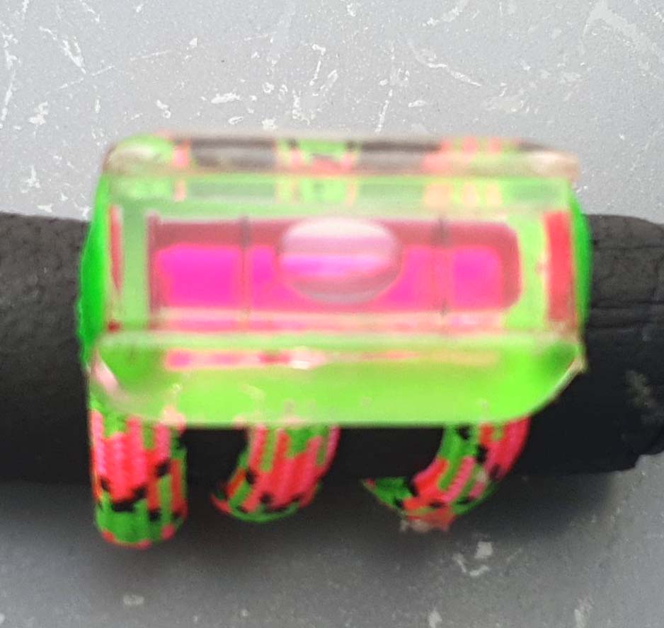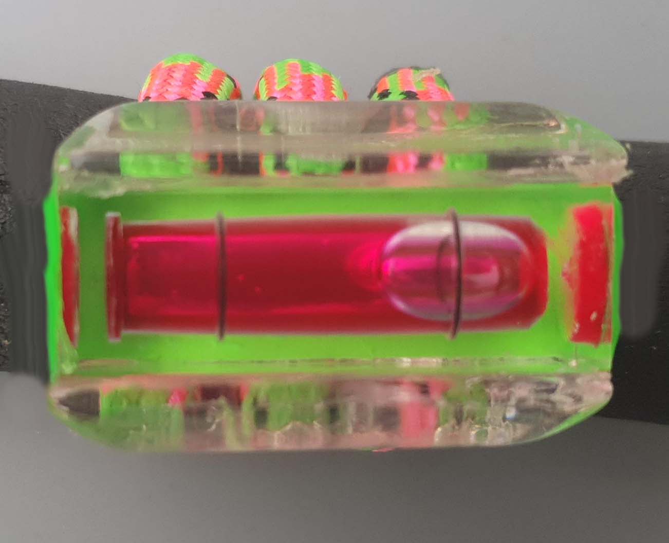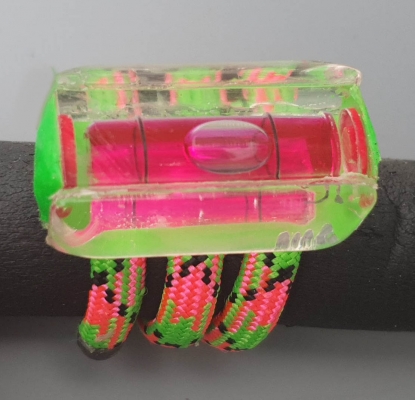 eckiger zweifarbiger Wasserrring mit Luftblase zum Kalibrieren der Waagerechten, Anschmiegsamer Schlingelring , der sich dem Finger automatisch anpasst