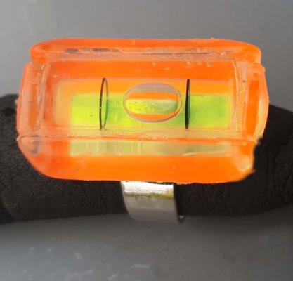 eckiger zweifarbiger Wasserrring mit Luftblase zum Kalibrieren der Waagerechten, Einfacher silber Metallring, der sich verstellen lässt