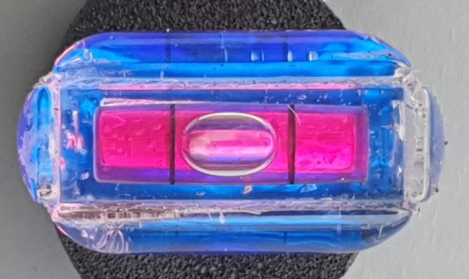 eckiger zweifarbiger Wasserrring mit Luftblase zum Kalibrieren der Waagerechten, Einfacher silber Metallring, der sich verstellen lässt