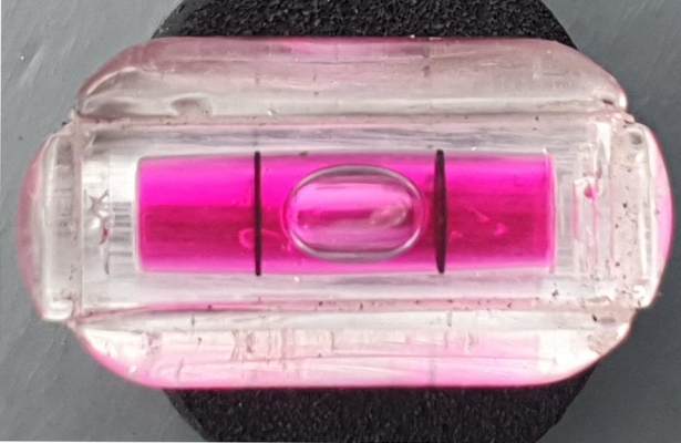 eckiger zweifarbiger Wasserrring mit Luftblase zum Kalibrieren der Waagerechten, Einfacher silber Metallring, der sich verstellen lässt