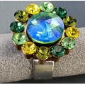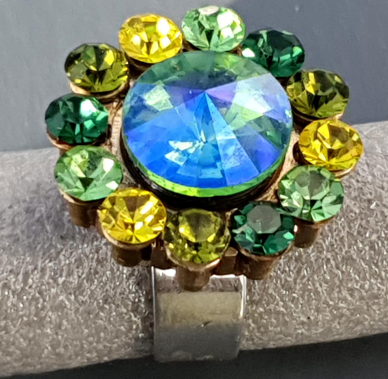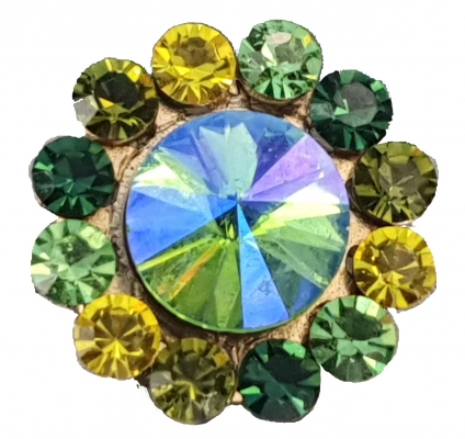 Drehendes Strassrad in Grüntönen, dass mit einem kleinen Stoß lange in Bewegung bleibt und die Farben dabei mischt.